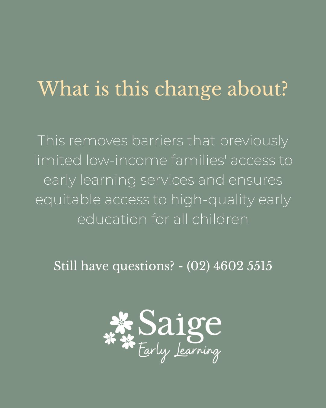Yes, our team at Saige Early Learning is happy to assist you with any questions about applying for the Child Care Subsidy. We can guide you through the process to ensure your fees are reduced. Click here to contact us today.